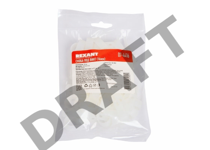 Кабельная скоба под винт REXANT 16 мм, белая, упаковка 50 шт.