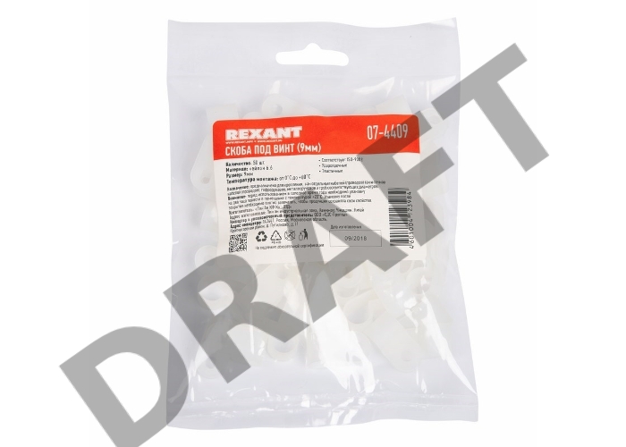 Кабельная скоба под винт REXANT 9 мм, белая, упаковка 50 шт.
