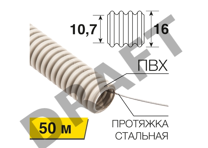 Труба гофрированная из ПВХ, с зондом, Ø16 мм REXANT