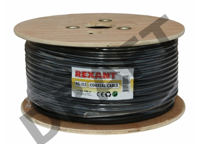 Кабель коаксиальный REXANT RG-213, 50 Ом, Cu/Cu, 96%, бухта 100 м, черный