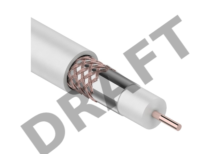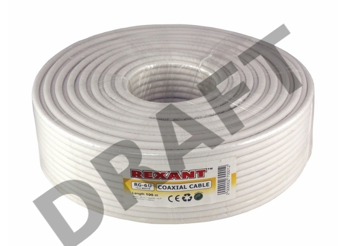 Кабель коаксиальный REXANT RG-6U+Cu, 75 Ом, Cu/Al/Cu, 64%, бухта 100 м, белый