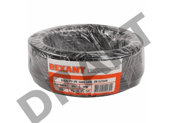 Кабель UTP REXANT 4PR 24AWG, CU (медь), CAT5e, 100 МГц, PE, черный, OUTDOOR, бухта 25 м