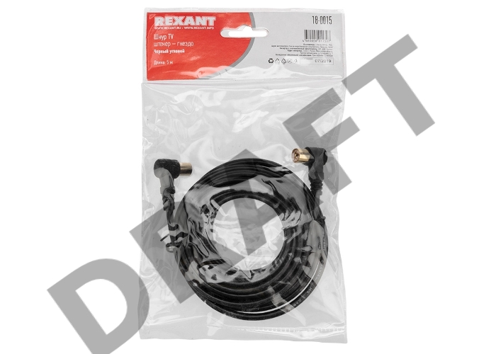 Шнур ТВ гнездо - ТВ штекер, угловой, длина 5 метров, черный REXANT