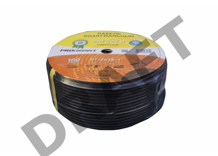 Кабель коаксиальный PROconnect SAT 703 B, Cu/Al/Al, 75%, 75 Ом, бухта 100 м, черный OUTDOOR