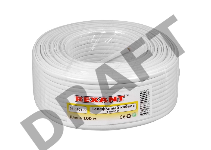 Кабель REXANT (01-5101-3) Кабель телефонный 4 жилы 100м CCA белый (ШТЛП-4)