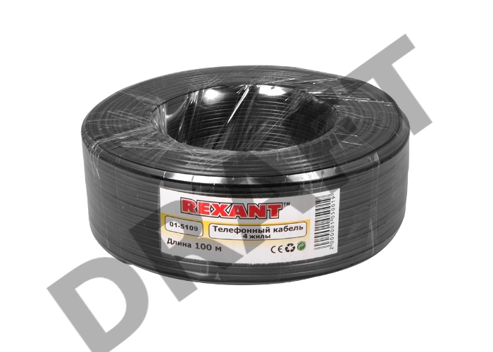 Rexant Телефонный кабель ШТЛП 4 жилы Cu, черный, 100м