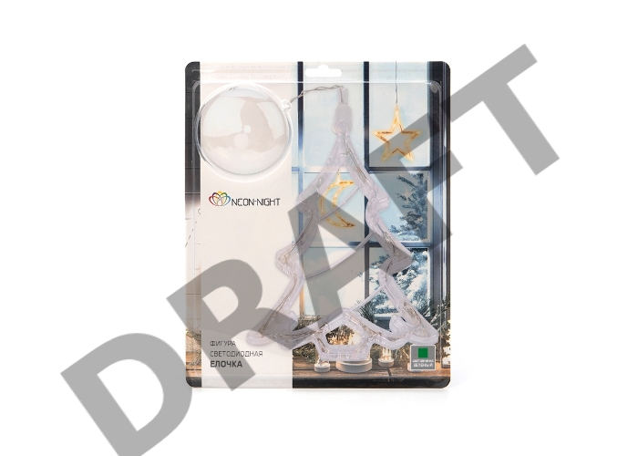 Фигура светодиод. "Елочка" на присоске (батарейки 3хААА в компл.) 8LED 190х160х10мм зел. 1Вт 4.5В IP20 NEON-NIGHT 501-017