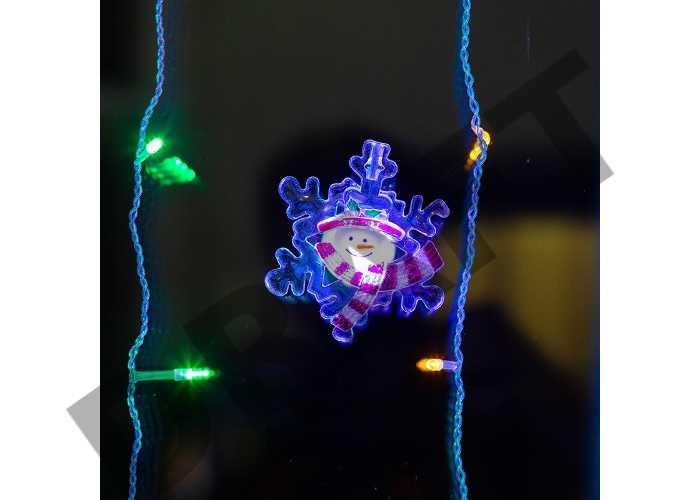 Фигура светодиод. "Снежинка со снеговиком" на присоске (батарейки 2хCR2032 в компл.) 80х90х15мм 1LED 6В IP20 RGB NEON-NIGHT 501-021