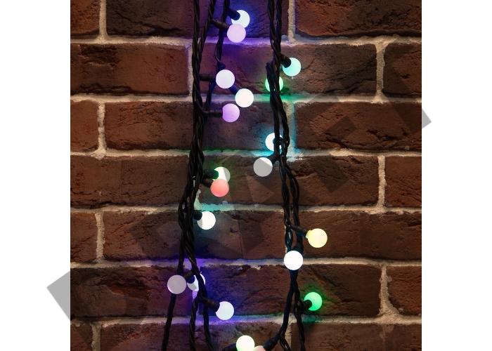 Гирлянда Мультишарики Ø17,5 мм, 10 м, черный каучук, 80 LED, цвет RGB