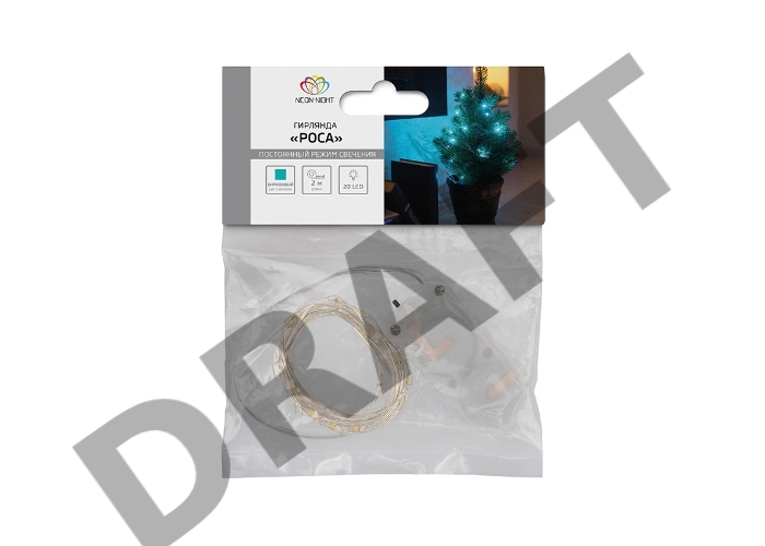 Гирлянда "Роса", 2 м, 20 диодов, цвет бирюзовый, тонкий батарейный блок