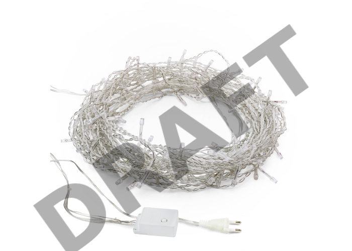 Гирлянда светодиодная универсальная 100 LED БЕЛЫЙ 10 метров, прозрачный ПВХ, с контроллером