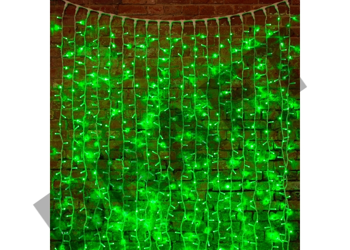 Гирлянда "Светодиодный Дождь" 2х3м, постоянное свечение, белый провод "КАУЧУК", 230 В, диоды ЗЕЛЕНЫЕ