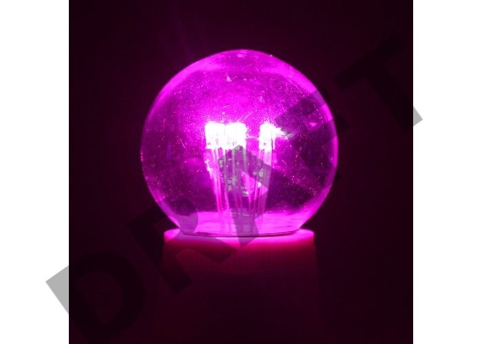Лампа шар e27 6 LED Ø45мм - розовая, прозрачная колба, эффект лампы накаливания