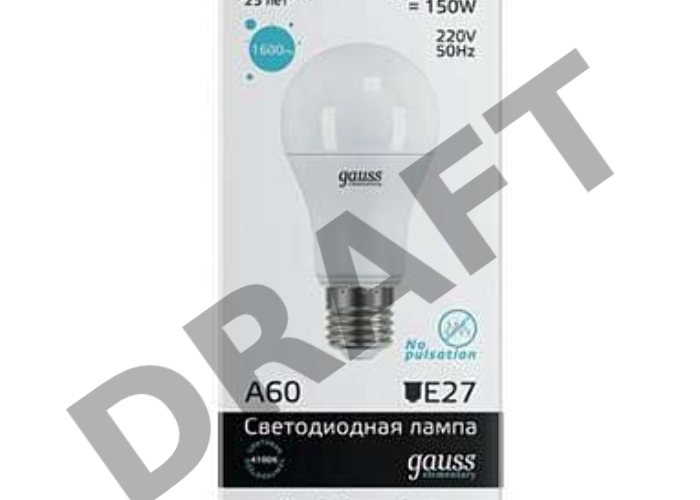 Лампа GAUSS LED Elementary Арт. 23229 A60 20W E27 4100K 1/10/40 груша