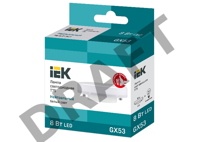 Лампа светодиодная Iek LLE-T80-8-230-40-GX53 ECO T75 таблетка 8Вт 230В 4000К GX53 IEK
