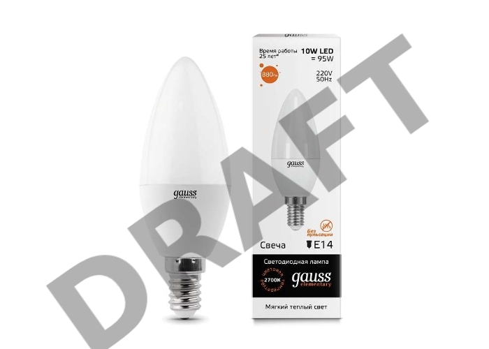 Лампа светодиодная LED 10Вт E14 220В 2700К Elementary свеча | 33110 | Gauss