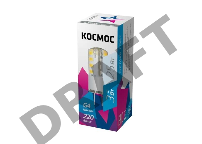 Лампа светодиодная LED 3Вт 220В G4 4500К КОСМОС LksmLED3wJCG4220v45
