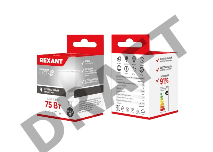 Лампа светодиодная Рефлектор 5,5 Вт 570Лм GU5.3 6500K REXANT