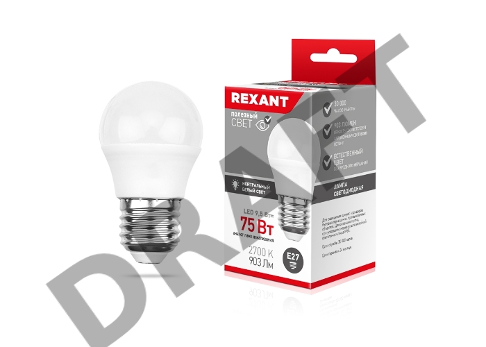 Лампа светодиодная Шарик (GL) 9,5 Вт E27 903 лм 2700 K теплый свет REXANT