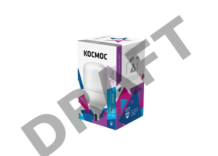 Лампа светодиодная высокомощная LED 30Вт E27 6500К (переходник с E27 на E40 в комплекте) Космос LksmHWLED30WE2765