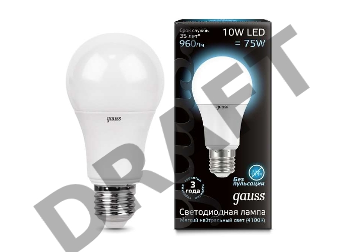 Светодиодная лампа GAUSS 102502210 LED A60 10W E27 920lm 4100K 1/10/50