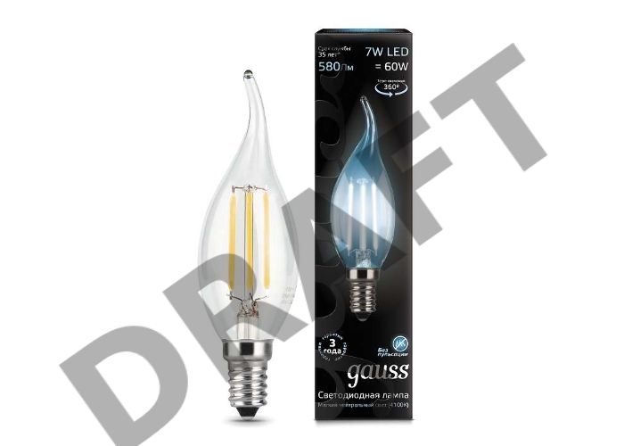 Светодиодная лампа GAUSS 104801207 LED Filament Свеча на ветру E14 7W 580lm 4100К 1/10/50
