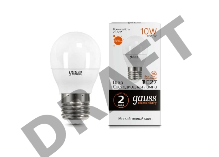 Светодиодная лампа GAUSS 53210 LED Elementary Шар 10W E27 880lm 3000K 1/10/100 0