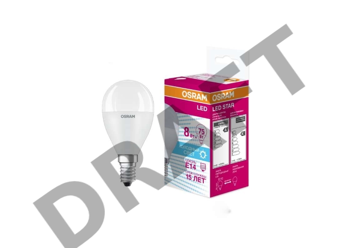 Светодиодная лампа LED STAR Classic P 8W, матовая колба, Е14 LSCLP75 8W/840 230V E14 10X1  RU   | 4058075210837 | Osram