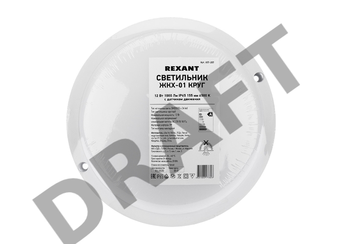 Светильник светодиодный пылевлагозащищенный REXANT ЖКХ-01 круг 12 Вт 1000 Лм IP65 155 мм 6500 K с микроволновым датчиком движения