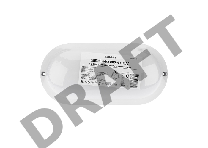 Светильник светодиодный пылевлагозащищенный REXANT ЖКХ-01 овал 18 Вт 1800 Лм IP65 196 мм 6500 K с микроволновым датчиком движения