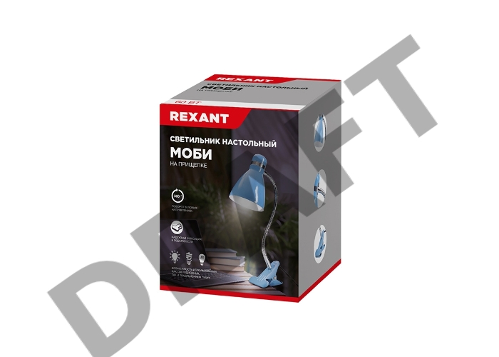 Светильник настольный Моби REXANT на металлической стойке с зажимом-прищепкой, с цоколем Е27, 60 Вт, цвет летнее небо