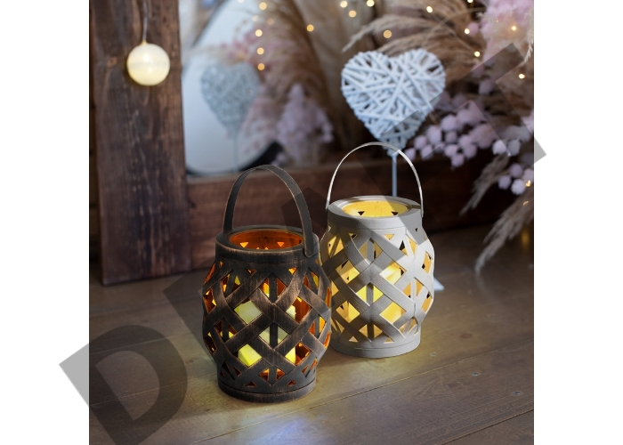 Декоративный фонарь со свечкой, плетеный корпус, белый, размер 14х14х16,5 см, цвет теплый белый