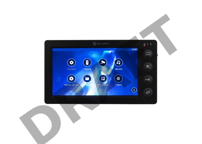 Цветной монитор видеодомофона 7" формата AHD(1080P), с детектором движения, функцией фото- и видеозаписи. Цвет черный (модель AC-435)