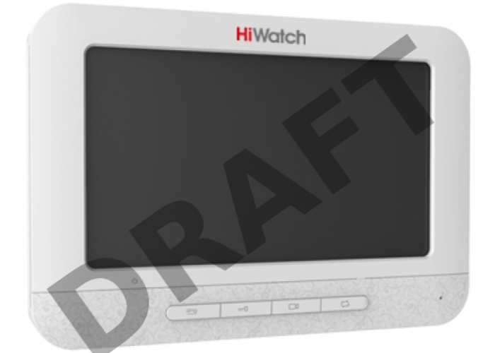 Комплект аналогового видеодомофона HiWatch DS-D100K Антивандальная вызывная панель с камерой разрешением 720 х 576 и ИК-подсветкой до 2м + 7"" цветной TFT монитор 800х480, 4-х проводная схема, 12В DC, 5Вт макс., адаптер в комплекте