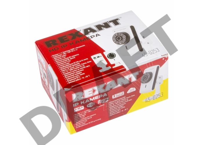 REXANT (45-0253) (IP видеокамера с ИК подсветкой, Матрица 1/4" OmniVision CMOS 1 Мп, Разрешение: 1280*720P (25к/с), Объектив 3,6 мм, ИК-подсветка до 15 м (11 ИК-диодов, Встроенный Wi-Fi, Рабочие температуры -10~+50, Питание 5В DC (Адаптер в комплекте).)