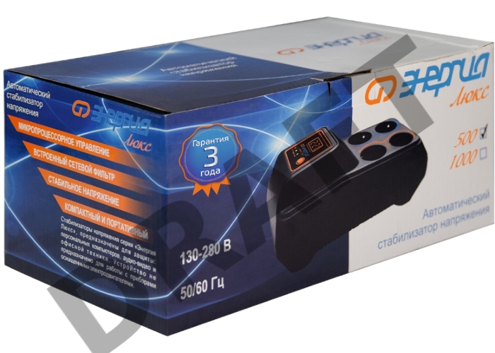Стабилизатор ЭНЕРГИЯ 500 Люкс Е0101-0122 500 ВA Напряжение входа В 130 - 280 А 2.3