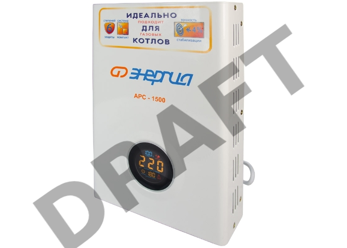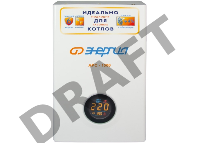 Стабилизатор ЭНЕРГИЯ АРС-1500 для котлов (+/- 4%) кВА 1,5 Входное напряжение В 120-276 Настенный