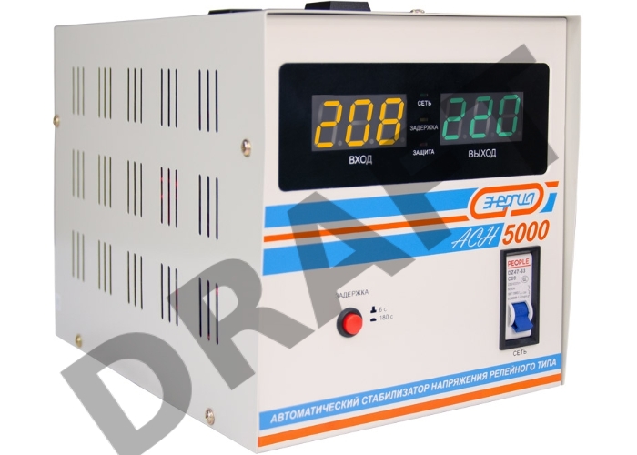 Стабилизатор ЭНЕРГИЯ АСН-5000 с цифр. дисплеем кВА 5 Напряжение входа (рабочее) В 140-260 Напольный