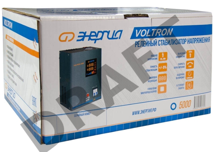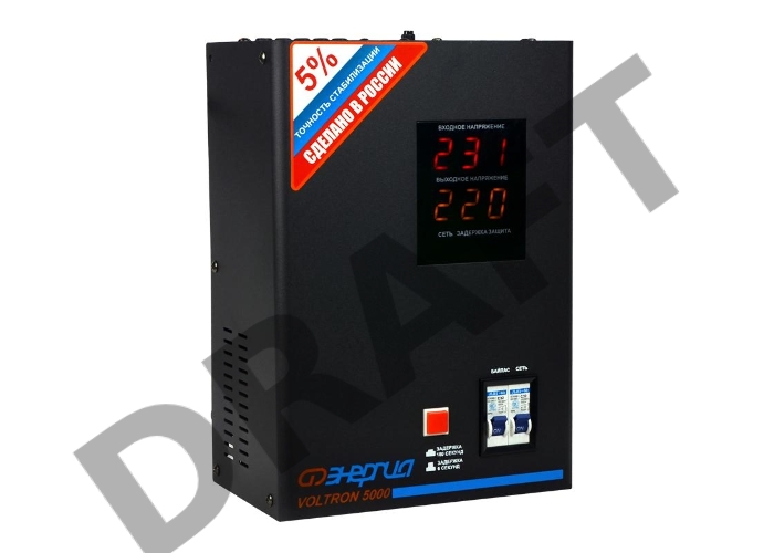 Стабилизатор ЭНЕРГИЯ VOLTRON 5000 по точности: 105-265В по защите: 95-280В