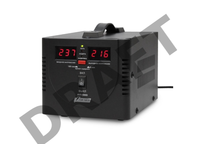 Стабилизатор напряжения Powerman AVS 500D Black (500ВА, 5А, КПД 98%, циф. индикация вх./вых. напряж.)
