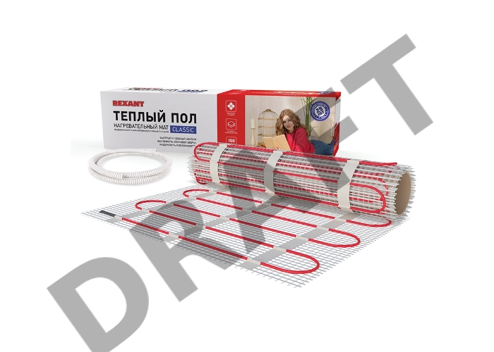 Тёплый пол (нагревательный мат) REXANT Classic RNX -9,0-1350 (площадь 9,0 м2 (0,5 х 18,0 м)), 1350 Вт, двухжильный с экраном