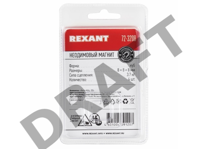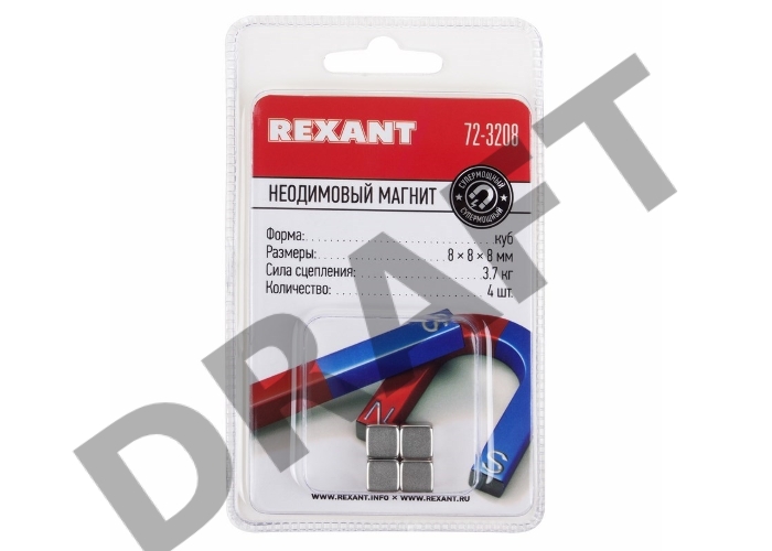 Неодимовый магнит куб 8х8х8 мм сцепление 3,7 кг (Упаковка 4 шт) Rexant