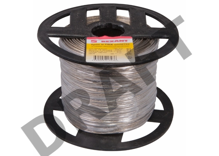 Трос стальной REXANT в ПВХ изоляции d=2.0 мм, катушка 200 метров 09-5320