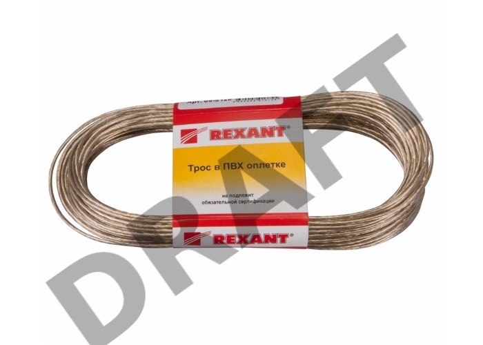Трос стальной в ПВХ оплетке d=2,0 мм, прозрачный (моток 20 м) REXANT