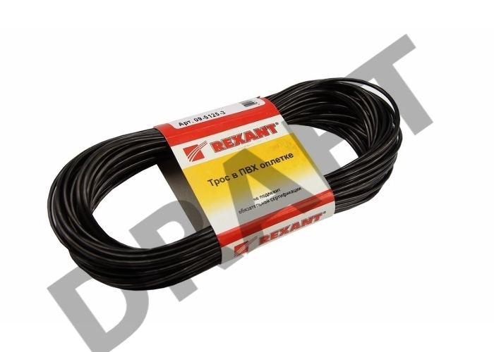 Трос стальной в ПВХ оплетке d=2,5 мм, черный ( моток 20 м) REXANT