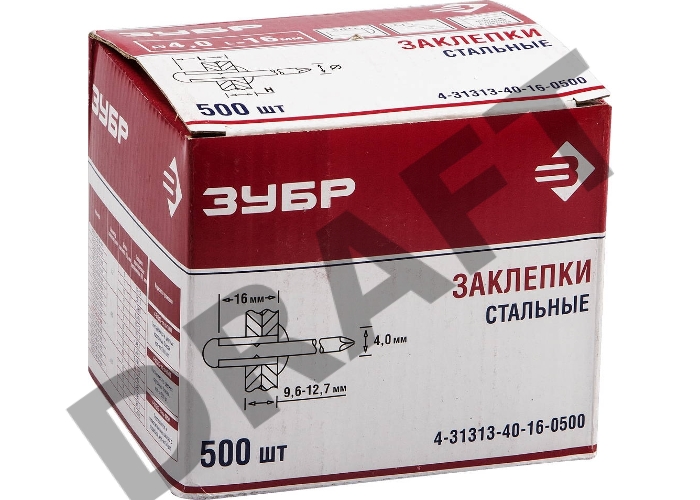 Заклепки Зубр стальные, 4,0x16мм, 500шт 4-31313-40-16-0500