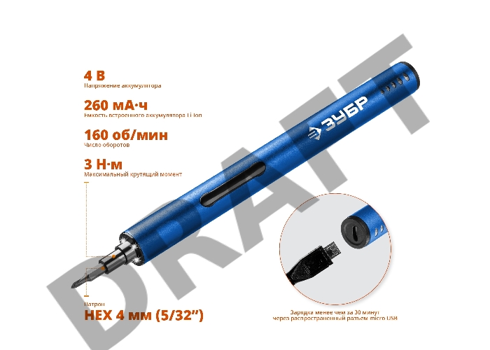 Аккумуляторная отвертка для точных работ Зубр Профессионал ОТР-4 Н20 4 Vmax, с набором 20 бит