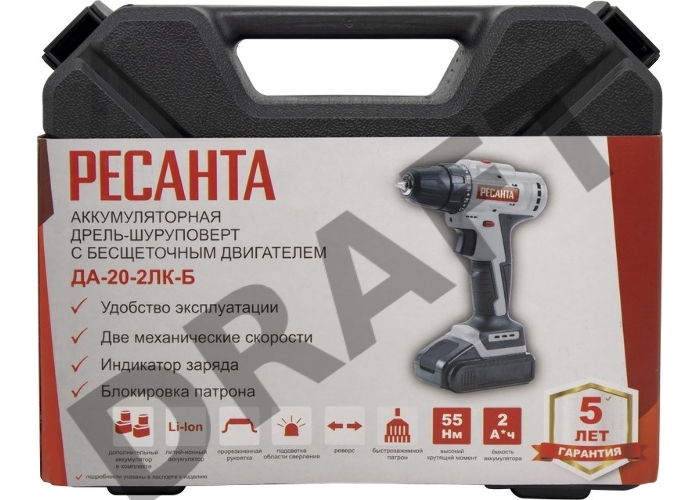 Дрель-шуруповерт аккумуляторная ДА-20-2ЛК-Б (2,0 А/ч)