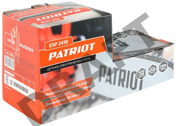 Пила цепная электрическая PATRIOT ESP 2418 , 2400Вт, 18'/45см, 3/8, 1,3мм 62зв, плавный пуск, бесключевая натяжка цепи, термозащита