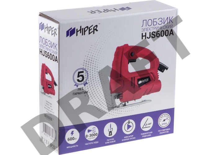 Лобзик Hiper Лобзик HIPER 600Вт, 0-3000 ход/мин, пропил 55 мм, коробка